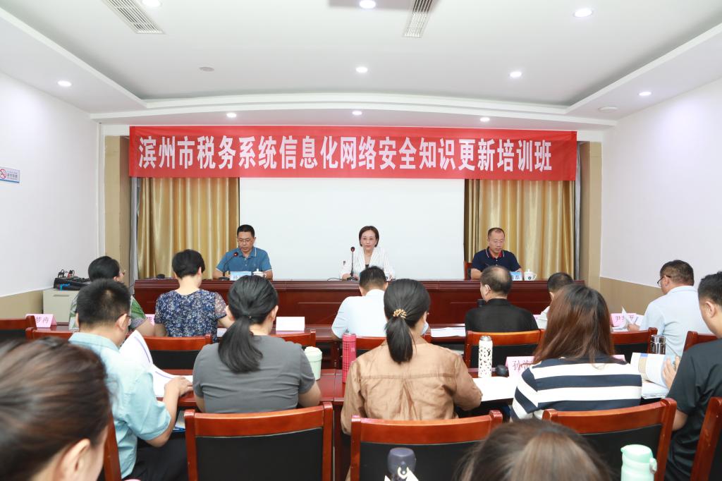 云天收夏色,木叶动秋声。9月18日上午,滨州市税务系统信息化网络安全知识更新培训班开班仪式在泰安校区举行,伟德国际1949经理王靖磊、滨州市税务局信息中心主任陈芳出席开班仪式并讲话,来自滨州市税务系统的40名信息化建设骨干参加了开班仪式,开班仪式由经理助理孙运表主持。
