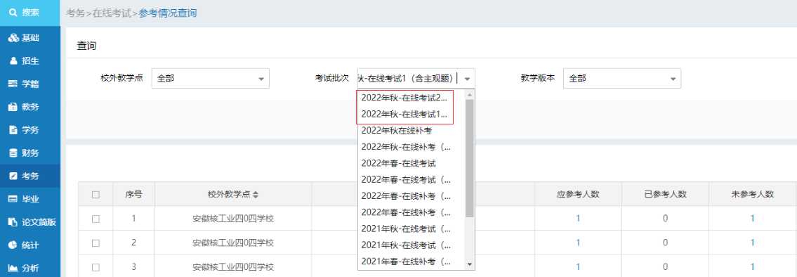 点击“考务”进入“参考情况查询”,如图: