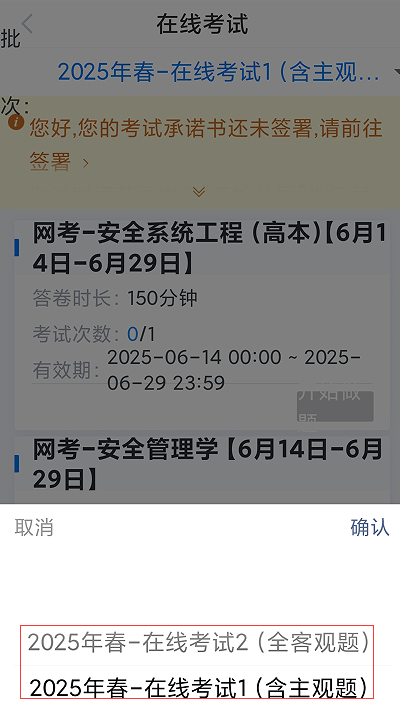 本学期线上考试,有两个考试批次: